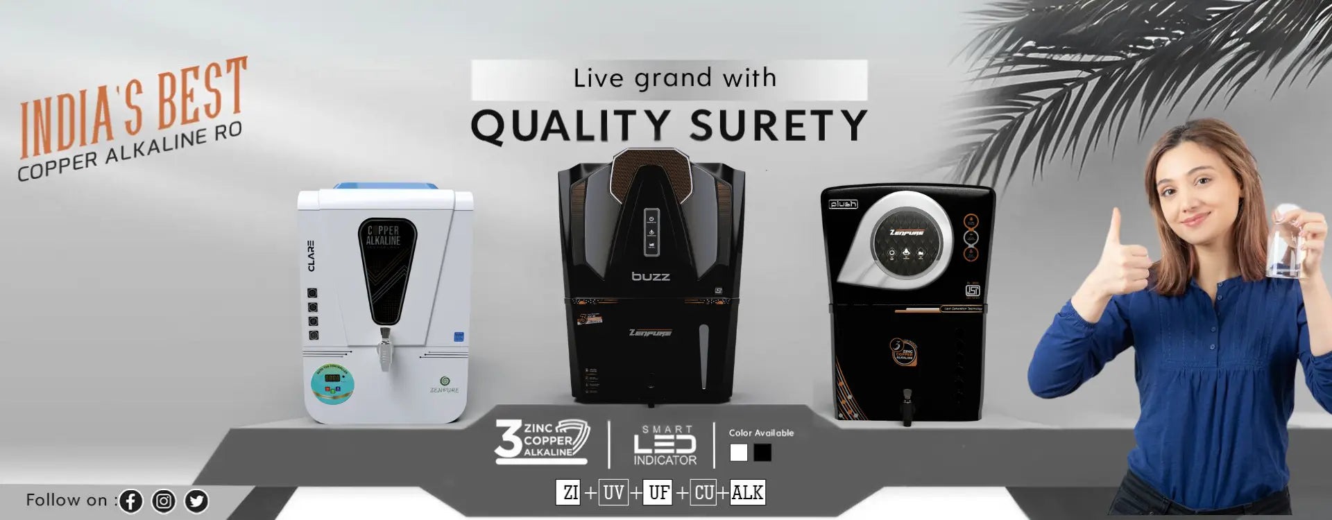 Zenpure Buzz 15 Litre RO+UV+UF+ALKALINE+TDS Adjuster Pure Copper Water Purifier Dispenser Machine (With Free Pre Filter)