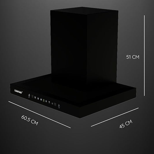 Zenpure Hella 60 CM 1300 m3/hr Filterless Auto-Clean Chimney, Multi Speed with Heavy Duty Motor, Touch Gesture Control, Black, 10 Years Motor Warranty + 1 Year Full Product Warranty