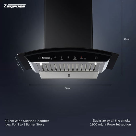 Zenpure Breeze 60 cm Autoclean Chimney, Perforated Filter Technology, 1500 CMH Suction, BLDC Motor, LT Warranty design with seamlessly blending functionality and aesthetics.